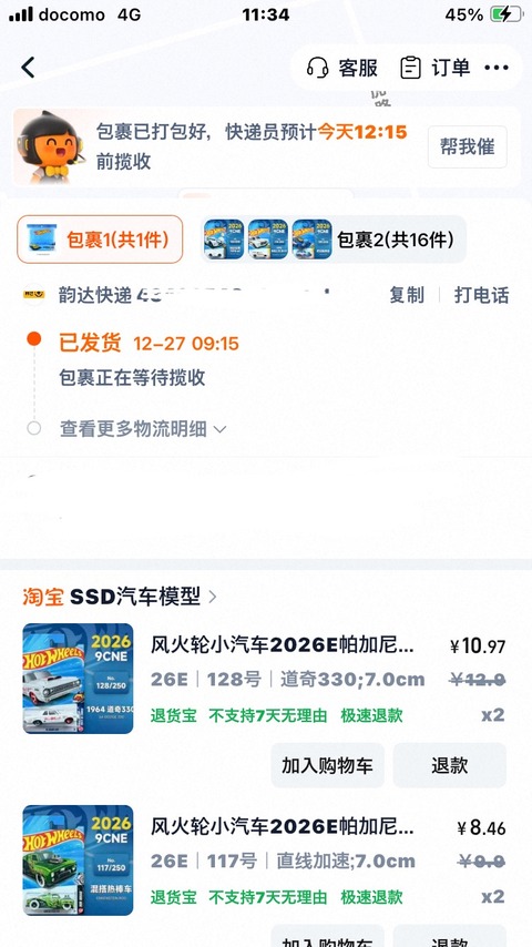 ホットウィールの2026Eアソ単品買ったら、オマケだけ先に送ってくるって。まあこういうのよくあるんですよタオバオでは。···