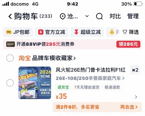 タオバオ カートに入れただけでは値引きされない場合がある ホットウィール